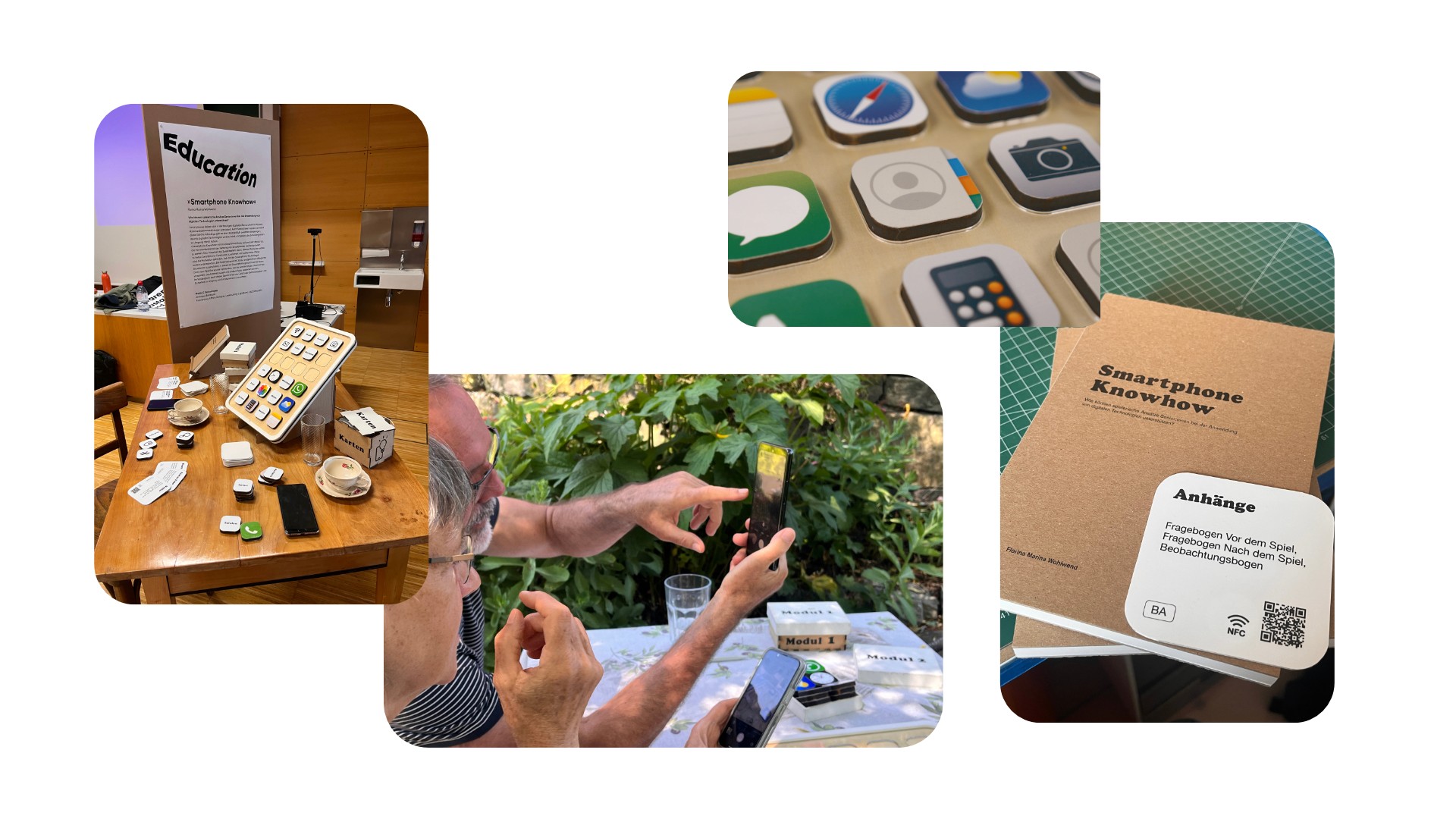 Als praktische Umsetzung habe ich ein analoges Spiel entwickelt, das alltägliche Smartphone-Situationen aufgreift. Durch spielerische Aufgaben lernen die Spielenden grundlegende Funktionen wie Anrufe, Nachrichten oder Internetnutzung. Im Fokus steht dabei, Sicherheit und Selbstständigkeit im Umgang mit Smartphones zu fördern.