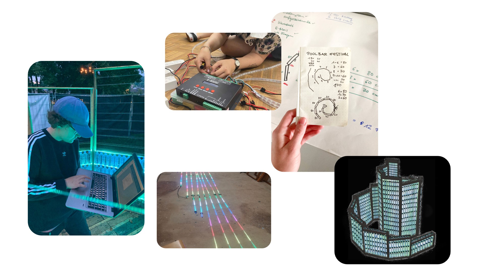 Wir befinden uns in einer Welt voller Chaos, Ungerechtigkeit und Missgunst. Das klingt zunächst alles andere als positiv. Aber gemeinsam lässt sich vieles verändern und verbessern. Genau darum geht es bei diesem Projekt. wave war Teil des Poolbar Festivals 2021. Es war eine begehbare Spirale aus Holz, LEDs und PET-Flaschen. Letztere wurden während des Festivals aufgebraucht und gesammelt. So war die Skulptur ein wachsender Teil des Festivals und die Besucher wurden indirekt Teil der Skulptur. Das Motto des Poolbar Festivals „being part of“ passte also perfekt.